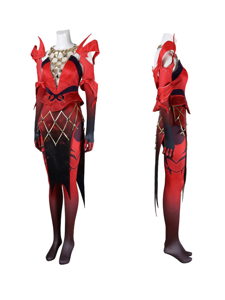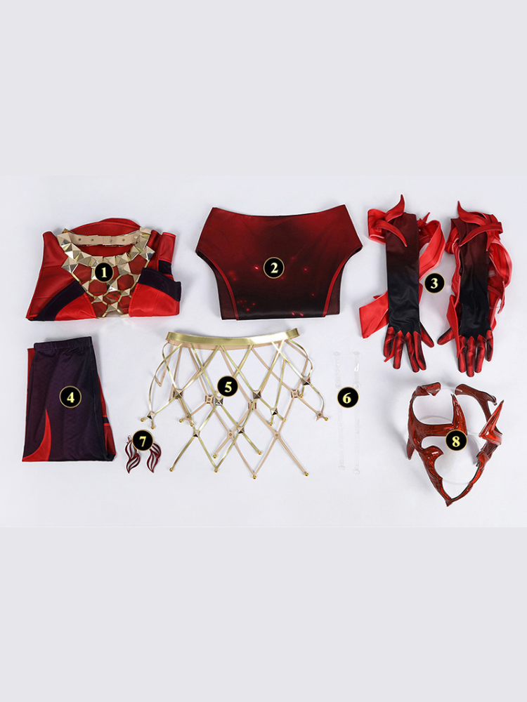 - Style: Mystic cosplay clothing, bold red design